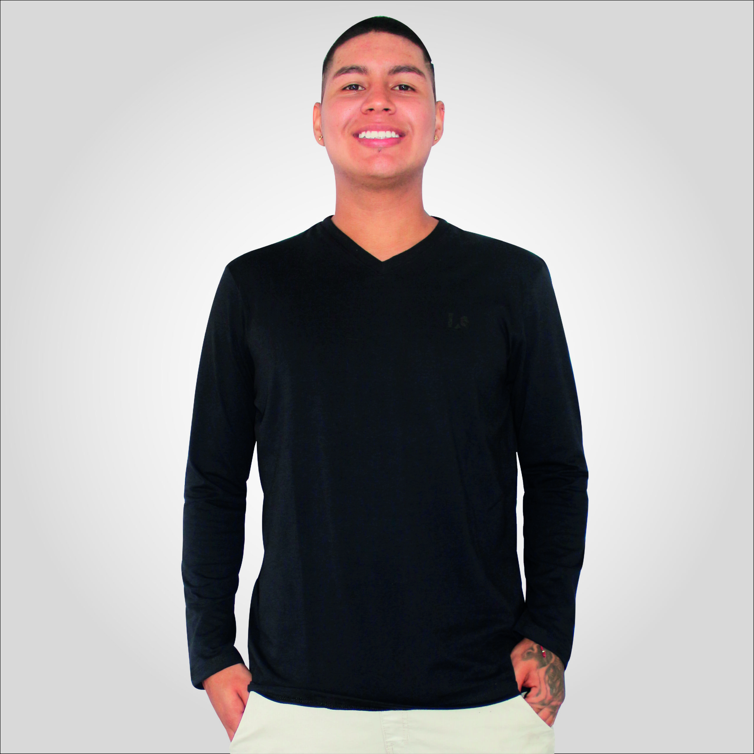 Buzo cuello V manga larga logo decorativo en la parte de enfrente lado izquierdo